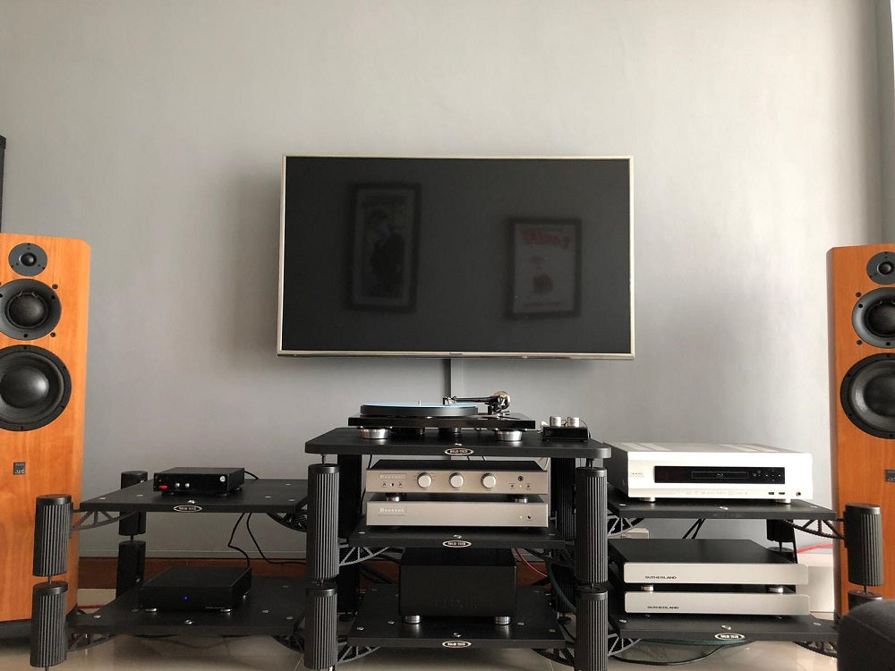 Elite BAC 3000 Balanced AC Power Conditioner Turntable : Dr Feickert Woodpecker Phono stageJE Audio HP-20 Disc Player and DACMarantz SA KI Ruby Integrated AmplifierJungson JA88D SpeakersJamo D830