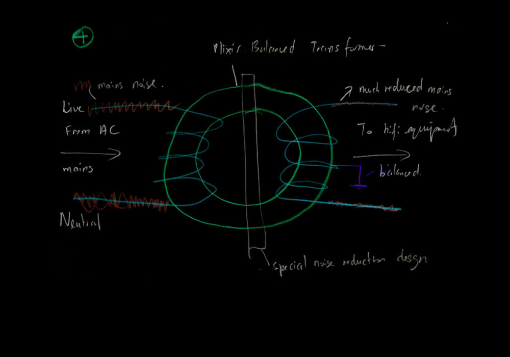 Mains AC noise is reduced by the isolating nature of the transformer, enhanced by the balanced design, which increases the common mode noise rejection. At the same time, the balanced design elegantly places its output's live and neutral voltage at equal and opposite potential to the earth. Thus, the earth now becomes a true null point and equipment powered with it will contribute very little leakage current and noise to the Earth, from their power supply sources.